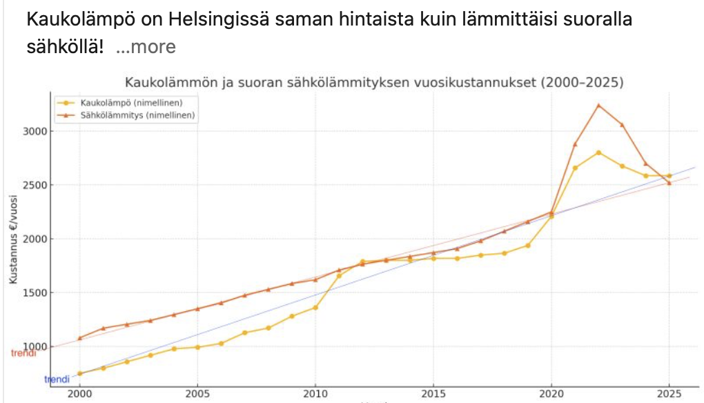 Yleisin syy on kustannukset. Kaukolämmön hinta on noussut merkittävästi viime vuosina, ja monella paikkakunnalla kaukolämmöllä lämmittäminen maksaa saman verran kuin suoralla sähkölämmityksellä.